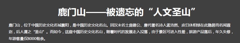項(xiàng)目地點(diǎn):湖北襄陽鹿門山旅游度假區(qū)