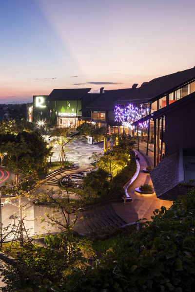 由Chanon Wangkachonkiat事務所設計,購物廣場為顧客提供了一個共享活動空間,設計理念來自于周邊山區(qū)等高線地形,一些高差錯落的臺地、路面圖案、形狀起伏的花冢、臺階、座椅及水系,將整個環(huán)境營造出自然、生態(tài)的共享活動空間。