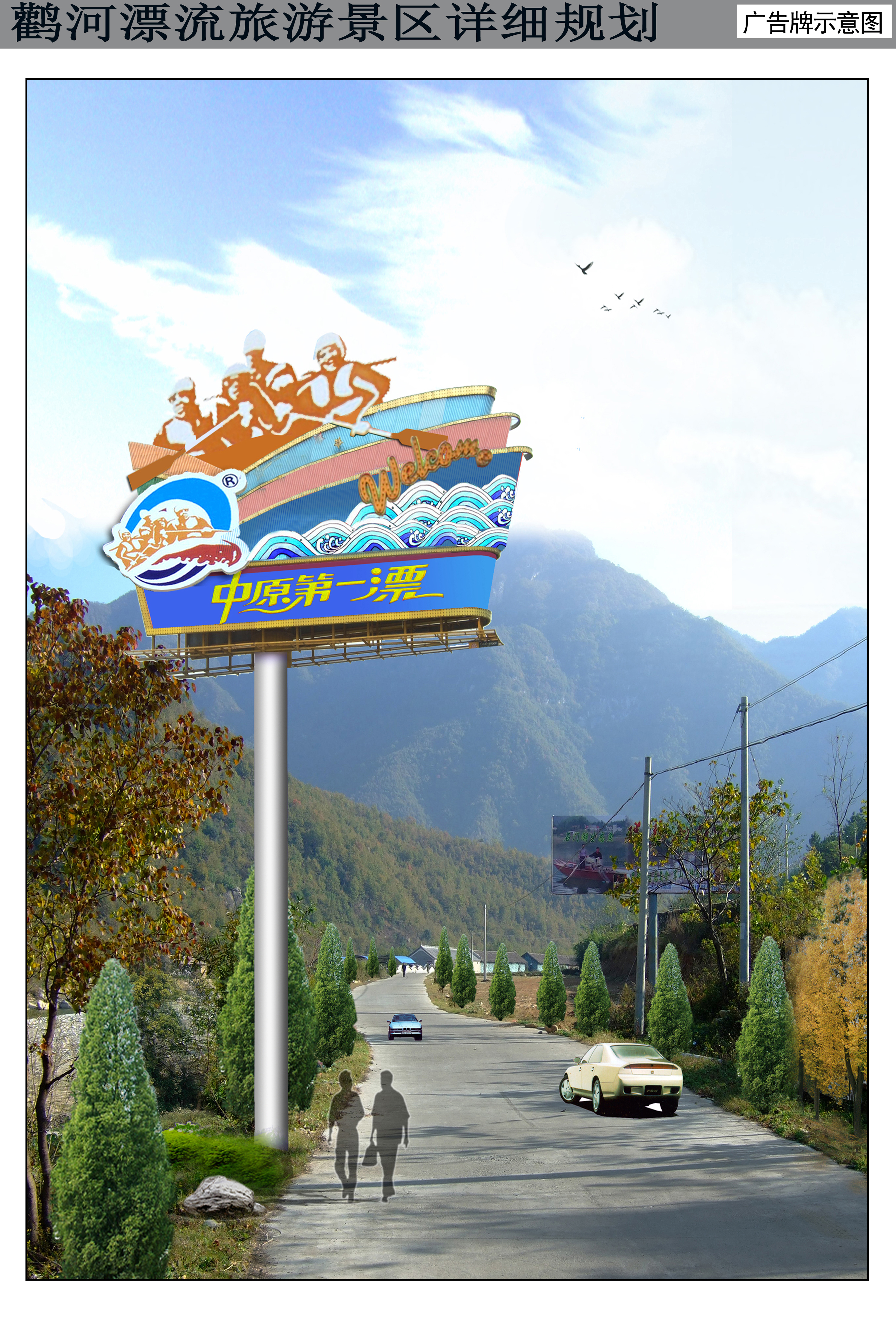 鸛河漂流在缺水的北方具有一定的壟斷性,中原地區(qū)又是其主要目標市場,中原又是華夏文明的發(fā)源地。因此,景區(qū)形象定位確定為“中原第一漂”。