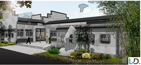壺中天茶舍:保留原有場(chǎng)地的道路格局和空間形態(tài),對(duì)原有建筑進(jìn)行改造,增設(shè)景觀小品,補(bǔ)植植被品種,烘托出茶舍幽雅安靜的氛圍。